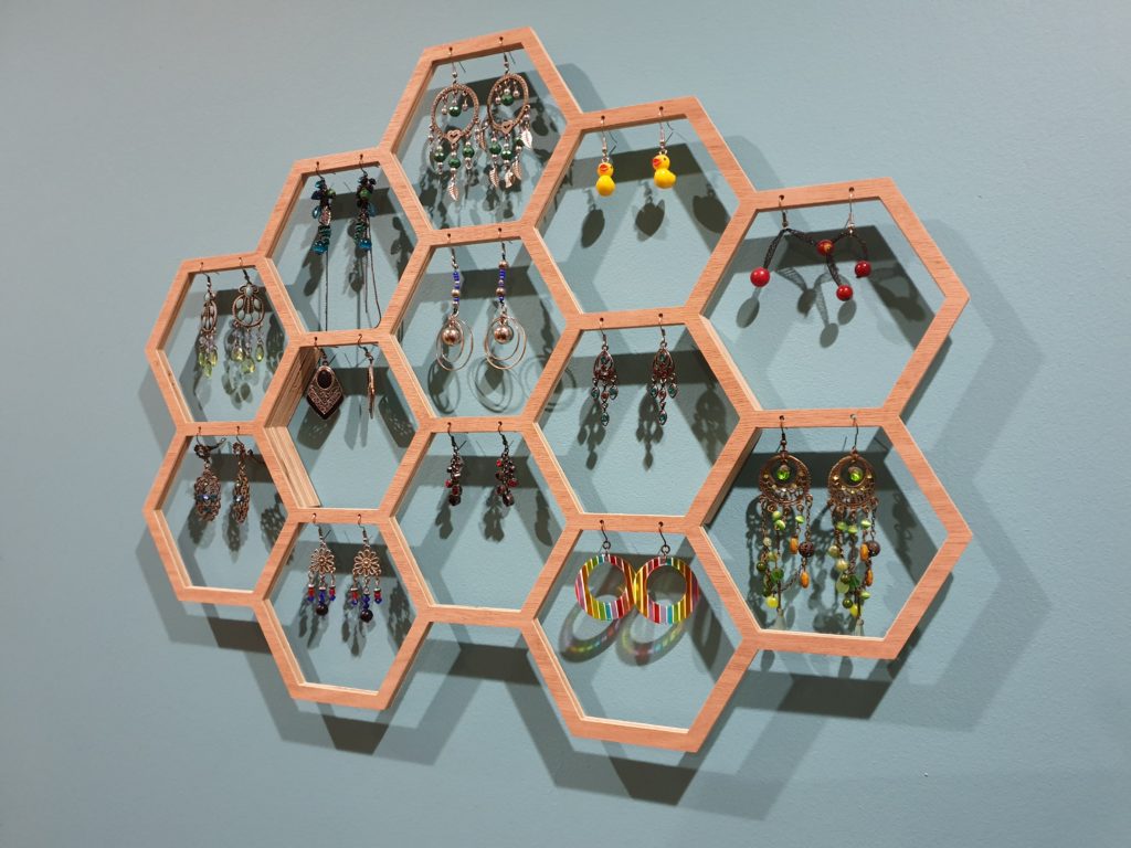 Techniques utilisées : logiciels de création et de prototypage 2D et 3D, découpeuse bois CNC, incrustation époxy, découpe vinyle, imprimante 3D.