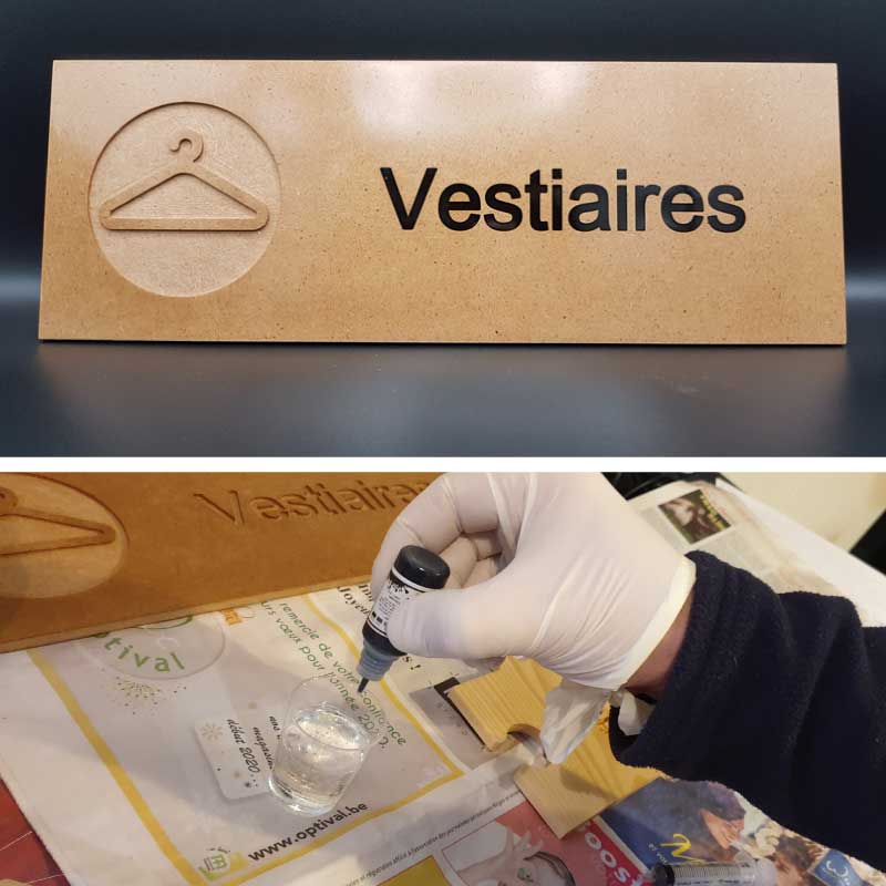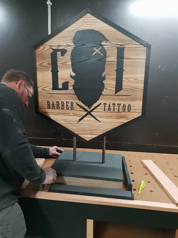 Nous réalisons des éléments de signalétique extérieures (enseigne, totem, plaque, numéros…) et intérieures (signalétique classique, logos 3D…) en bois.